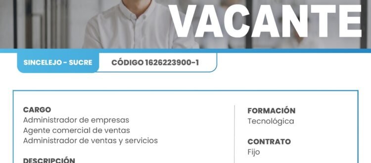 Vacante en Sincelejo, aprovecha