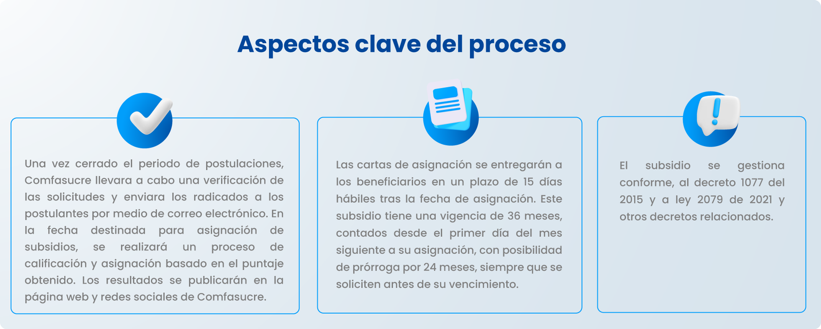 El subsidio de vivienda ofrecido por Comfasucre está disponible para afiliados en diversas modalidades: adquisición de vivienda nueva y usada, construcción en sitio propio y mejoramiento de vivienda. Los interesados deben presentar el formulario de postulación de manera presencial durante las fechas de apertura y cierre establecidas.